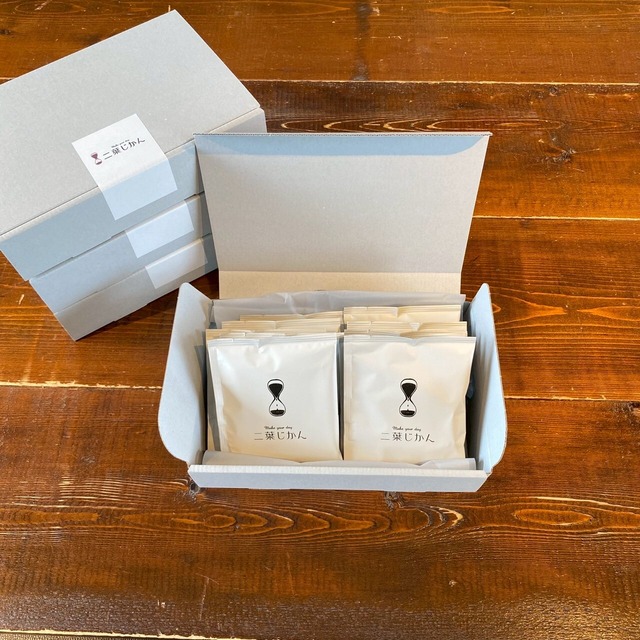 CAFE28+の兄弟店『二葉じかん』のオリジナルブレンド 『じかんブレンド』がドリップパックに。 二葉じかんのコーヒー豆は、 宇都宮の自家焙煎珈琲で有名な『おーるどびーんず』さんで 二葉じかん用に豆のブレンドをお願いし、中煎りで焙煎。 小さめのカップで120ccほど淹れますと、お店のような味わいを楽しめます。 お試し用の3個セット、送料無料です。 豆本来の風味の生きたコーヒーで ゆるり、ゆるんでみてはいかが?